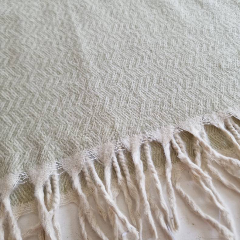 Uldtæppe fra Nepal – sart lys grøn harmoni